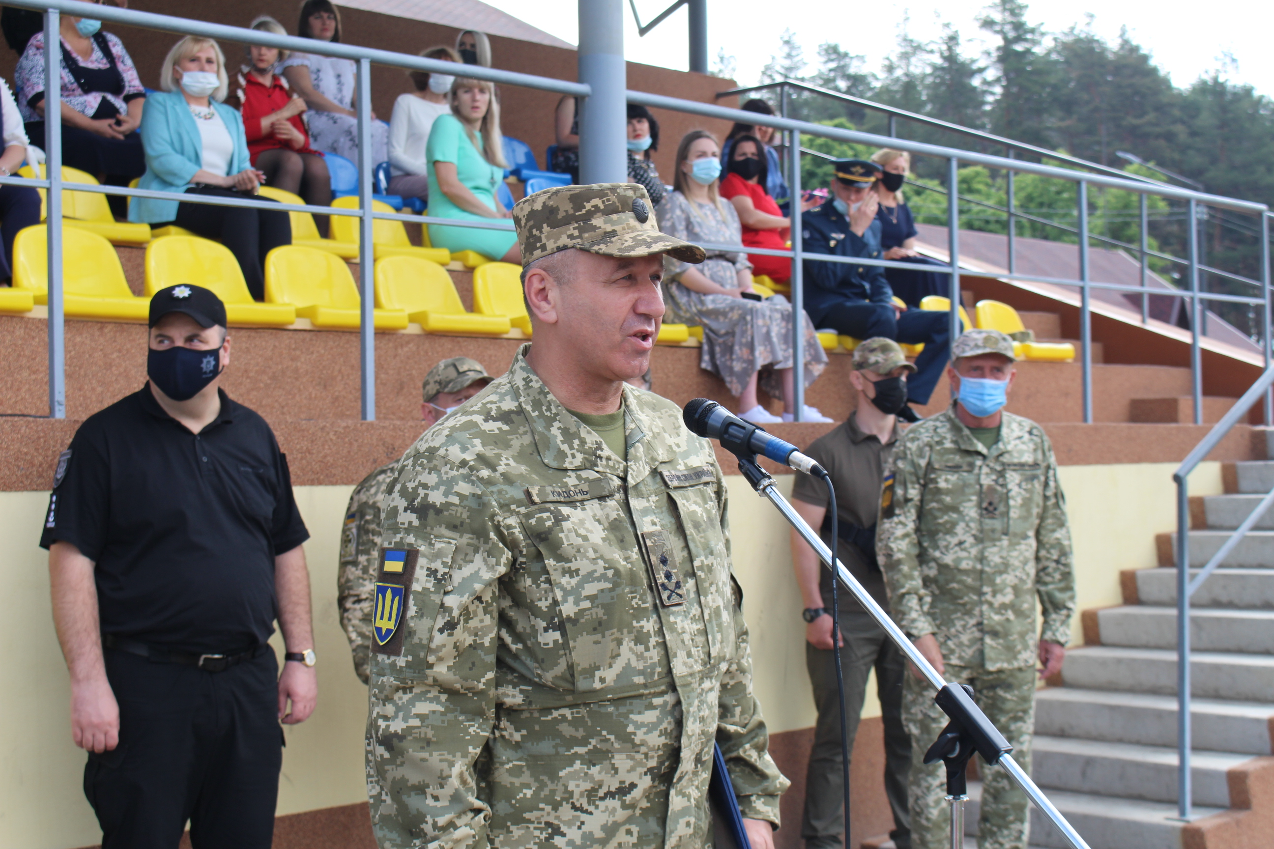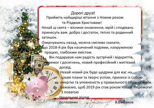 Також з вітальним словом виступив начальник ліцею бригадний генерал Валерій ЄМБАКОВ. .Висновком його промови стали слова про те,що результатом нашої роботи є наші випускники, які гідно несуть службу в усіх родах військ та видах Збройних сил, інших силових структурах України.