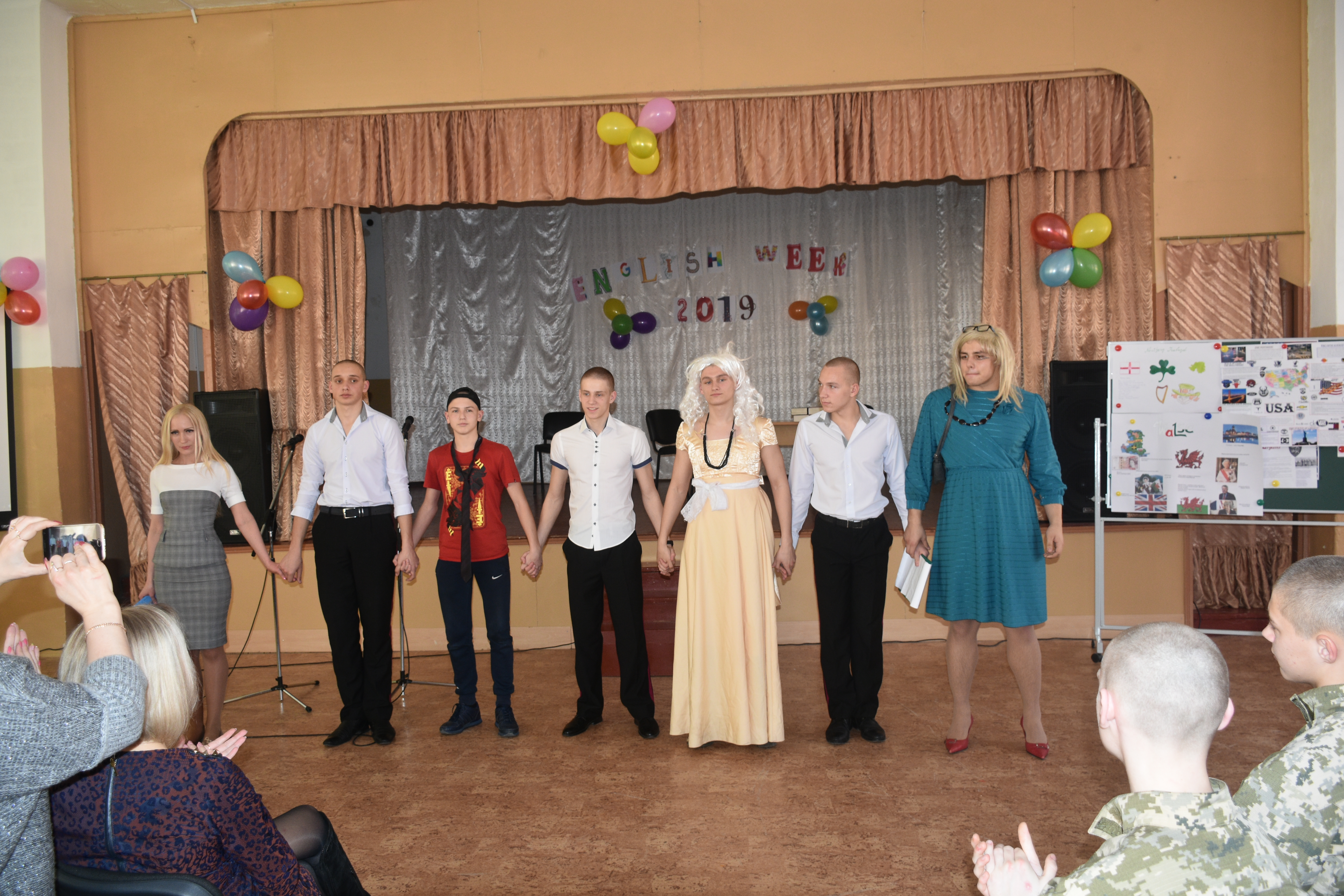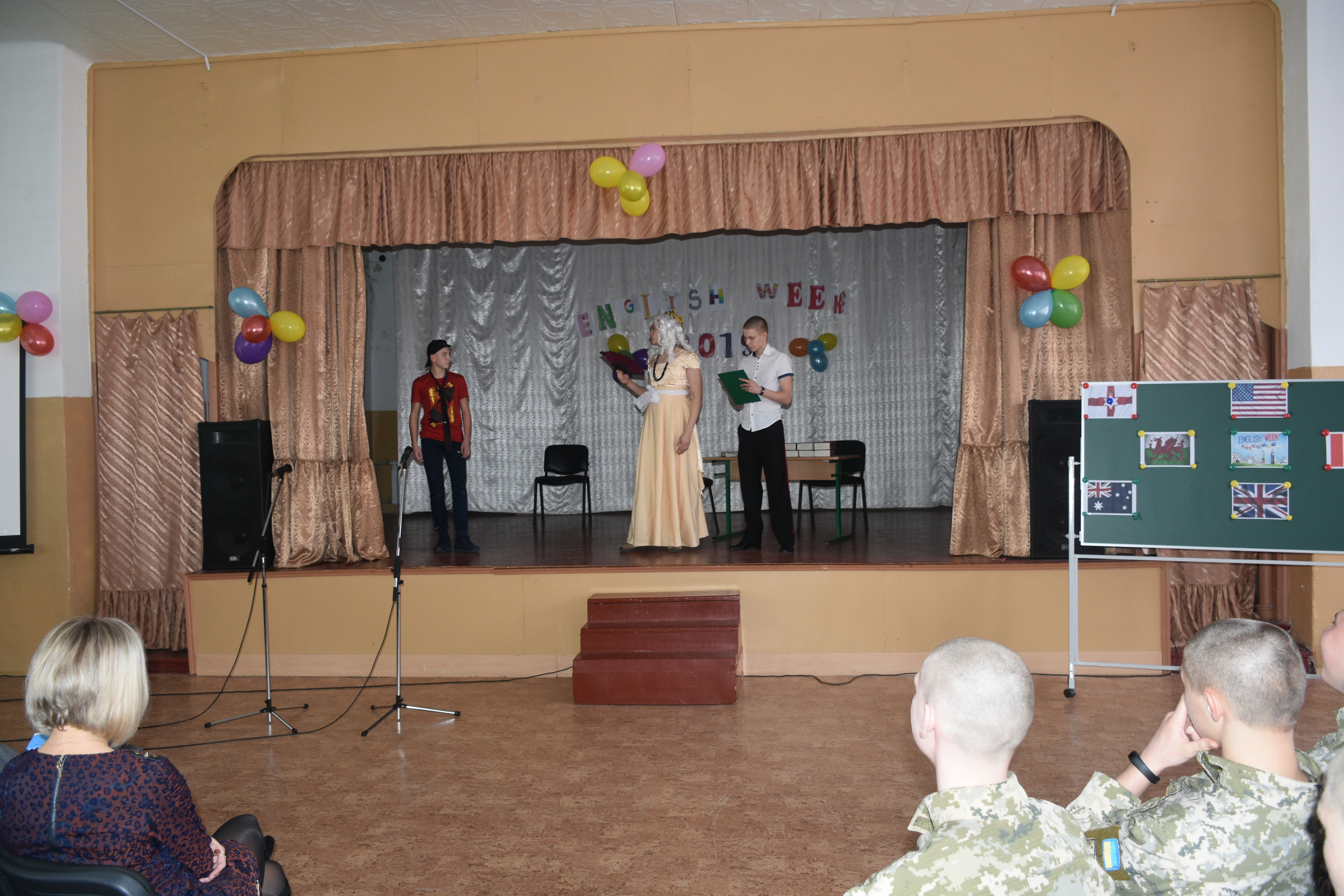 Захід, присвячений 77-й річниці створення ООН підготували вчителі англійської мови Олена Журба, Оксана Безкровна, Дарꞌя Гриценко та вчитель історії Мирослав Савченко.