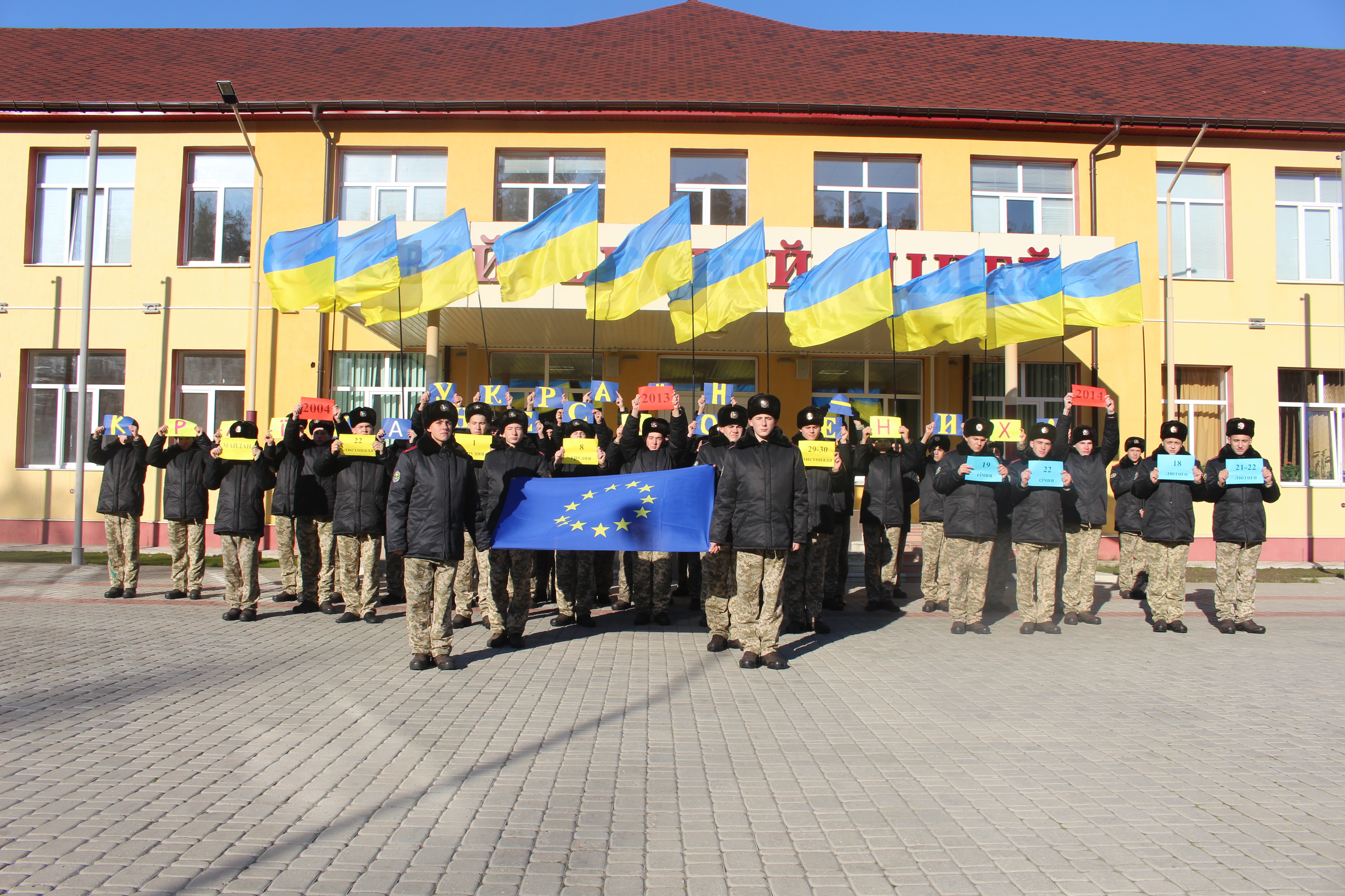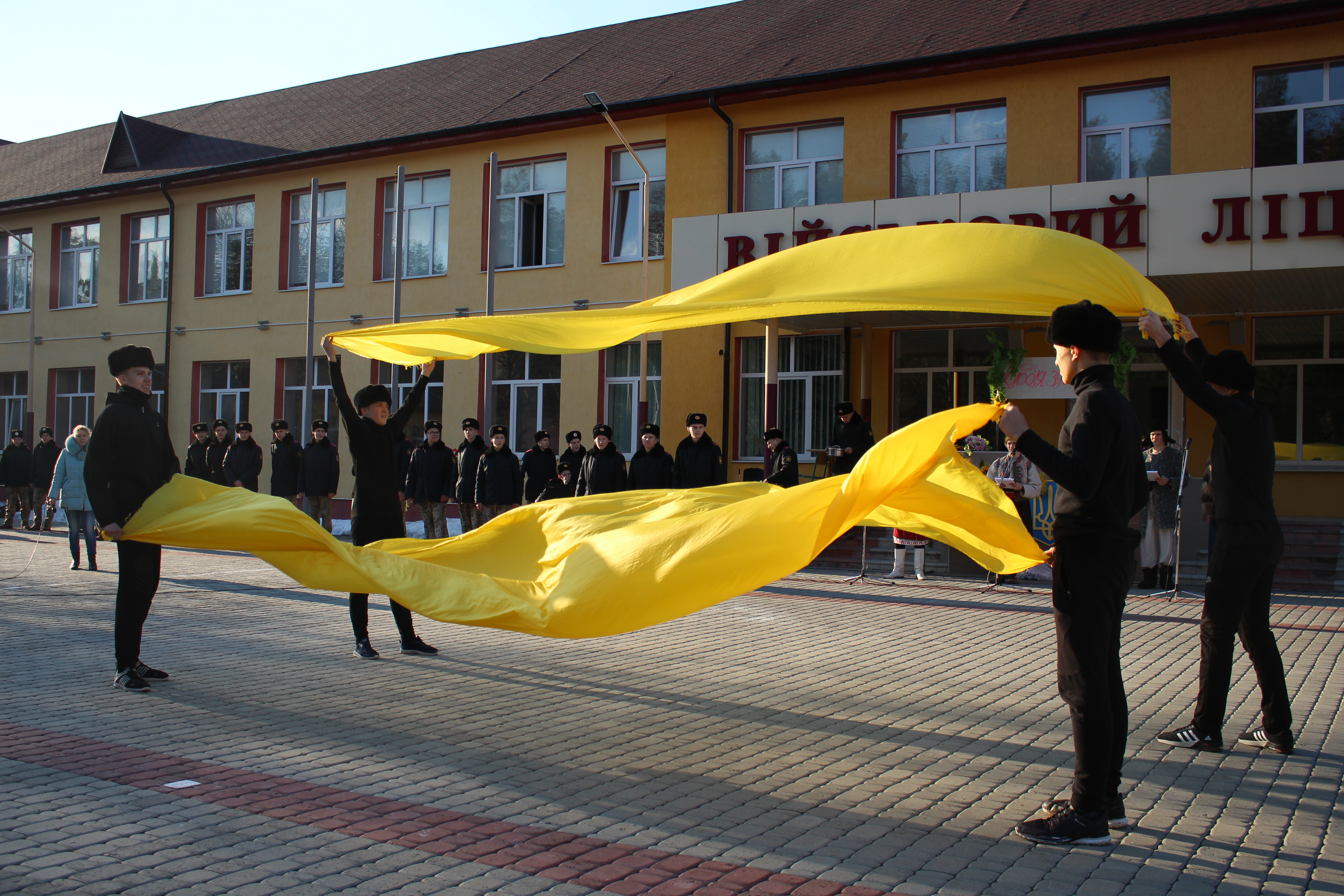 Закінчилось святкове шикування урочистим проходженням всього особового складу під військовий марш, після чого ліцеїсти відправились на перший урок «Україна-Європейська держава».
