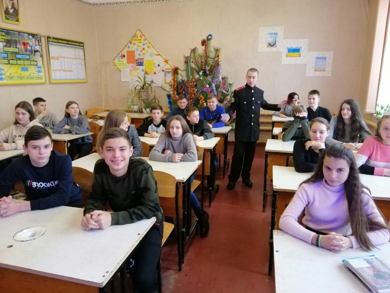 Наприкінці ліцеїсти подякували гостям за цікаву зустріч та подарували веселу козацьку пісню, яка стала подарунком усім присутнім до Дня Захисника України.