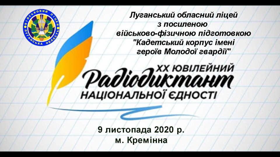 «КАДЕТСЬКИЙ КОРПУС ІМЕНІ ГЕРОЇВ МОЛОДОЇ ГВАРДІЇ» ПРИЙНЯВ УЧАСТЬ У НАПИСАННІ ВСЕУКРАЇНСЬКОГО ДИКТАНТУ НАЦІОНАЛЬНОЇ ЄДНОСТІ